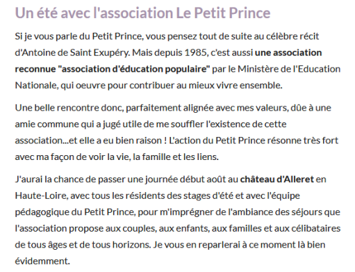 Elsa Grangier, journaliste à l'émission de télévision a conseillé 2 organismes dont ... Le Petit Prince.